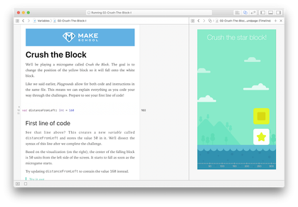 XcodeのPlayground機能を用いたMake Schoolの教材。