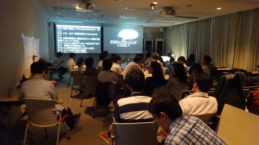 僕が担当させていただいたラーニングスタジオ「匿名チャットの,あやしくて創造的な学び。」は、ふだん講演やワークショプでよく使っている匿名チャットのシステムを参加者のみなさんに使っていただいて、カンファレンスのテーマになっている「アクティブ・ラーニング」と「創造する学び」を模索していく、というものでした。部屋を暗くして、お香をたいて、黙々とコメントを入力する異様な空間を楽しみながら、発見、学び、反省点がいっぱいできるスタジオになりました。