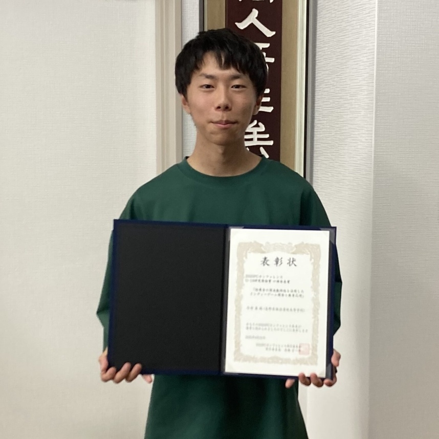 この度は、優秀賞という大変光栄な賞をいただき心より感謝申し上げます。そして、本研究の論文の執筆するにあたってご指導していただいた先生方ありがとうございました。